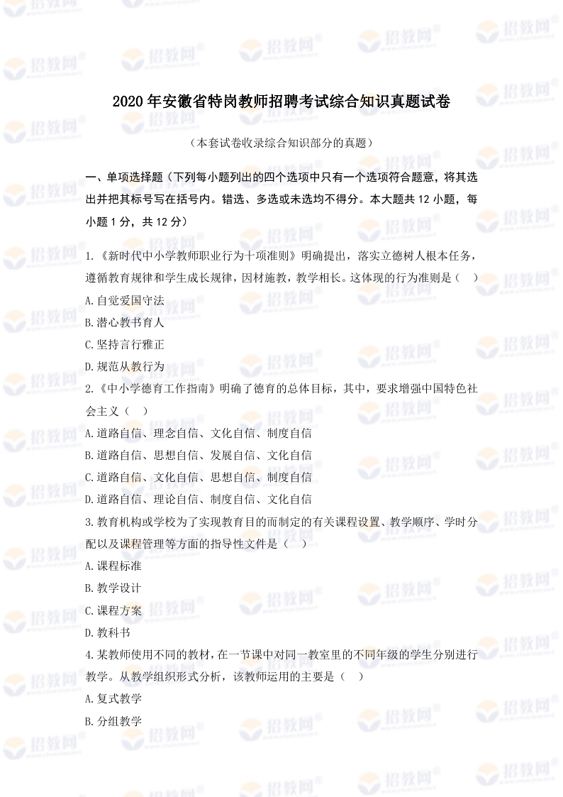 关键词: 特岗教师 2020