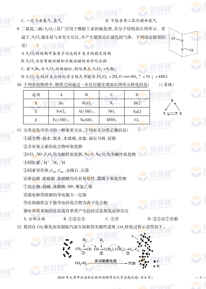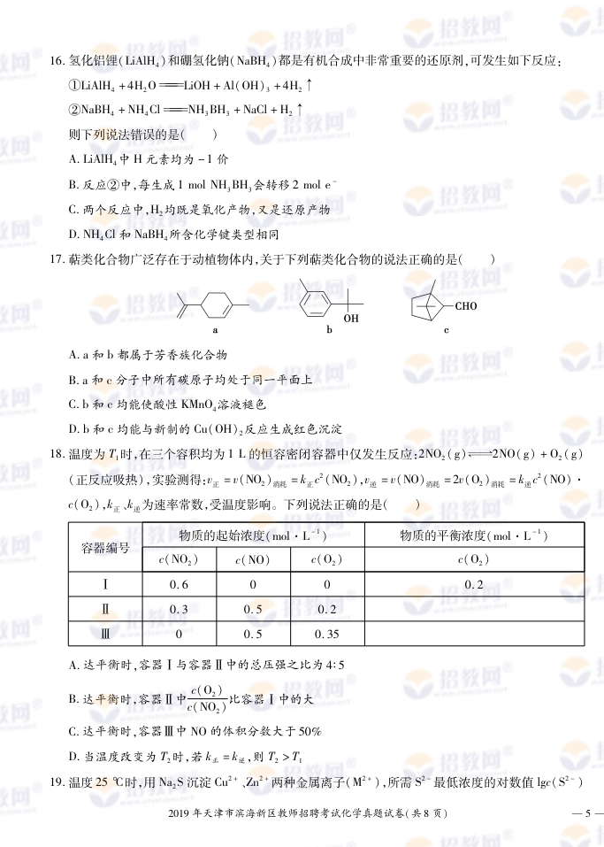 2019年天津市滨海新区教师招聘考试化学试题试卷及答案解析-凯发真人