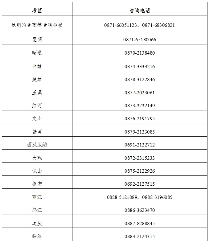 1.报考全省中职专业课、实习指导教师面试的考生只能选择“昆明冶金高等专科学校考区”报考。该类考生审核确认由昆明冶金高等专科学校考区组织实施,具体审核确认安排见昆明冶金高等专科学校凯发真人官网公告。“昆明冶金高等专科学校考区”不接收其他科目的报名。
